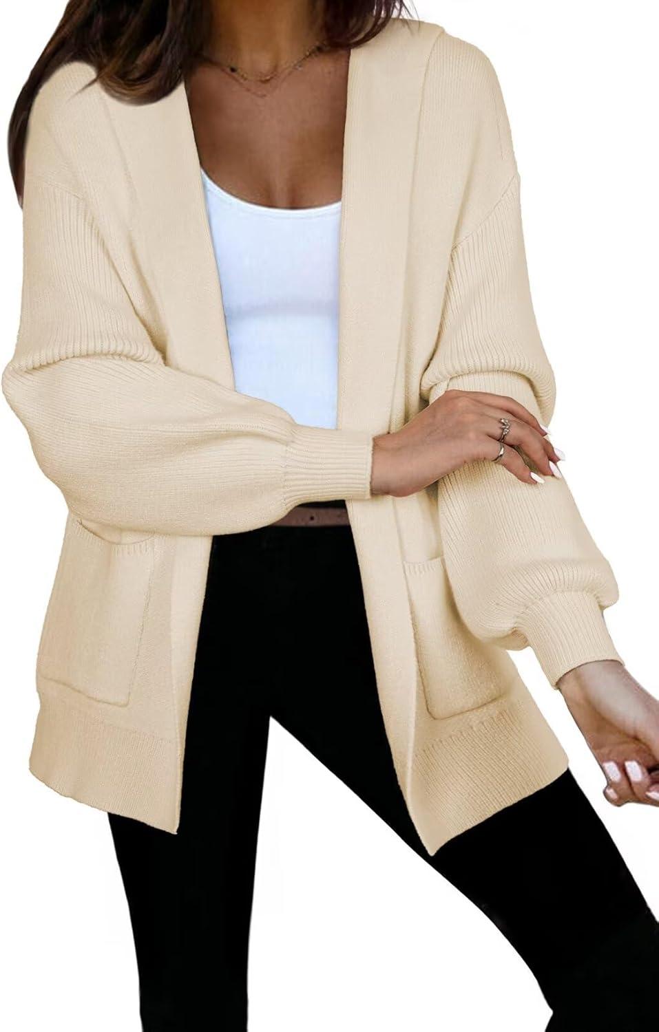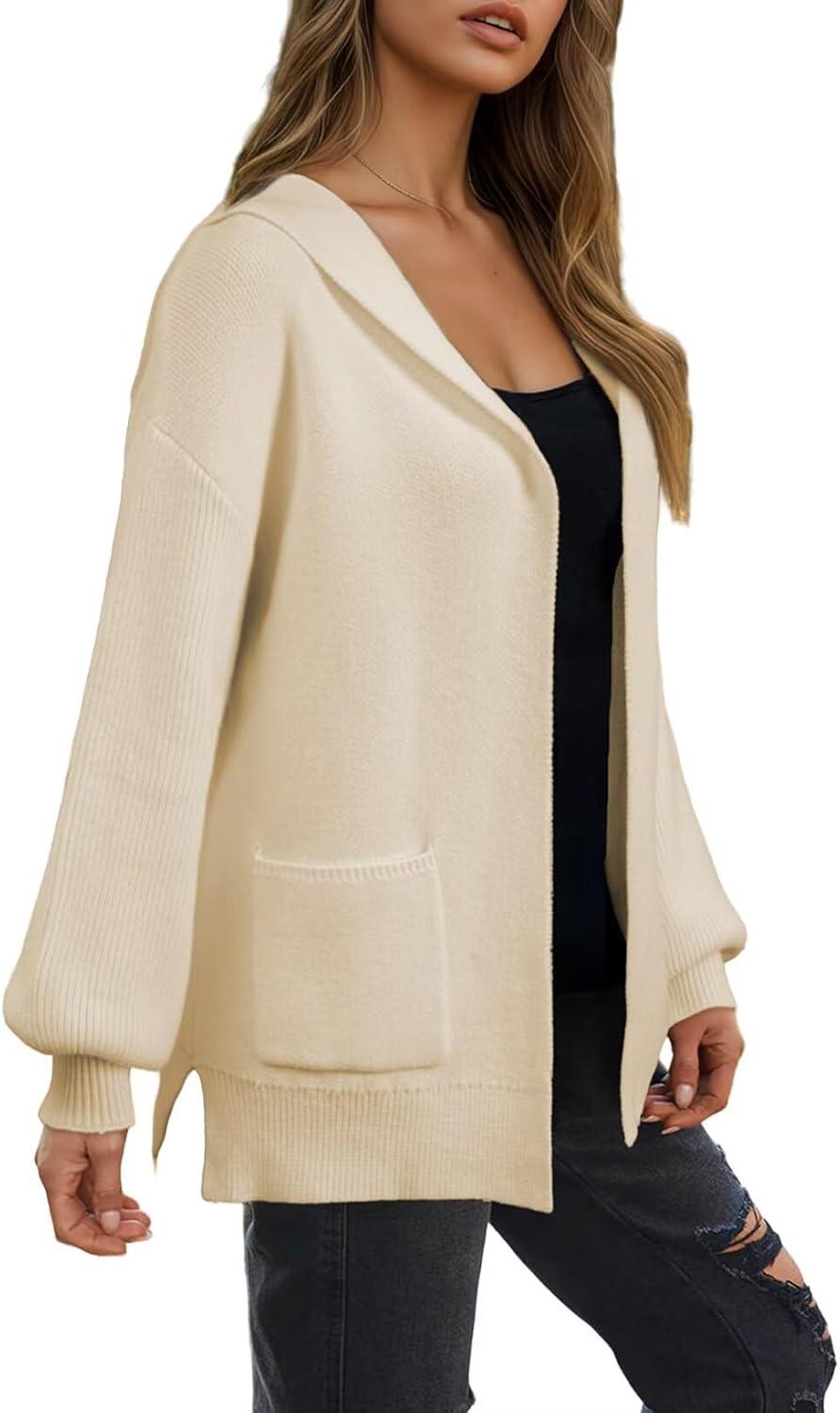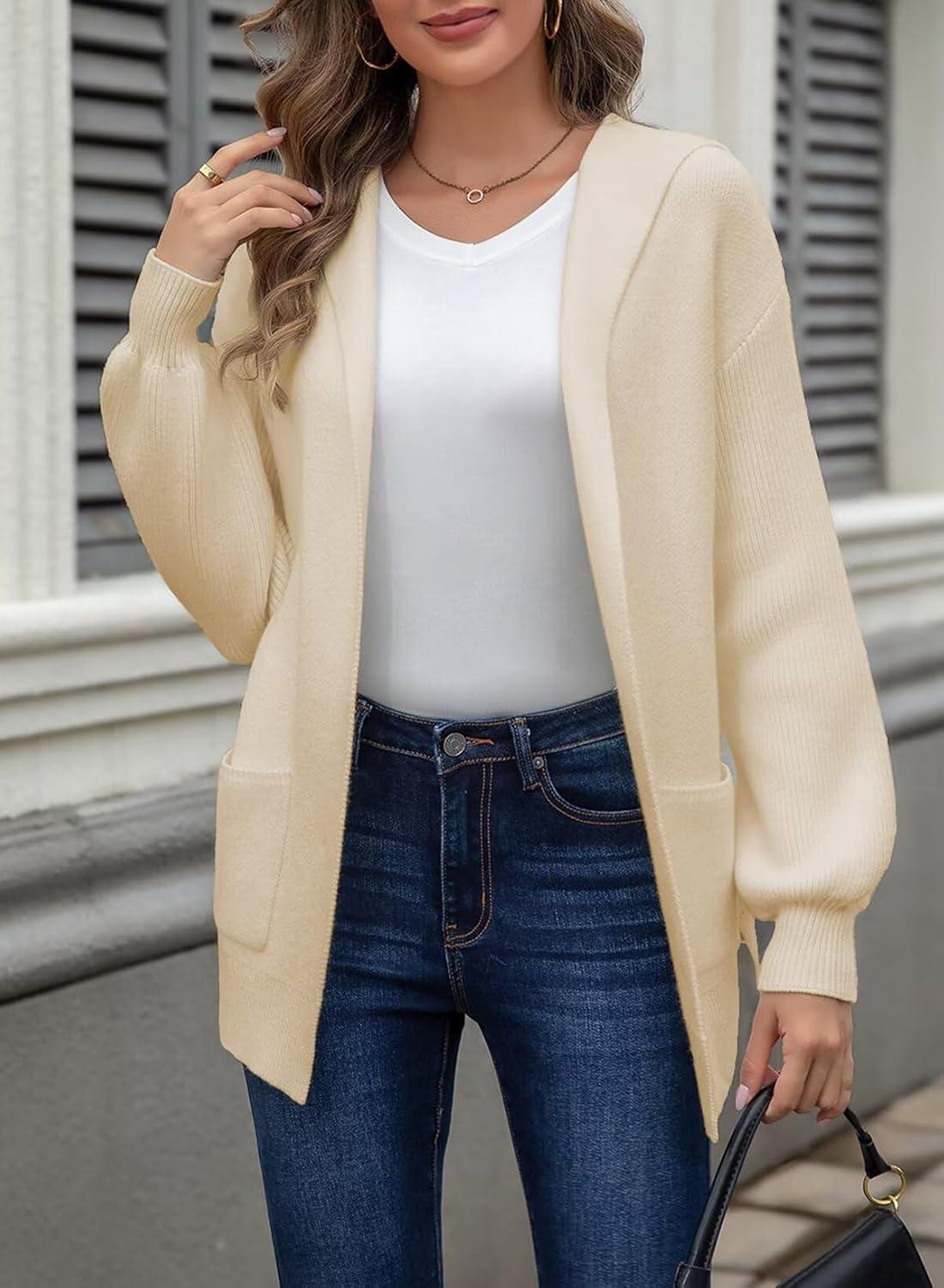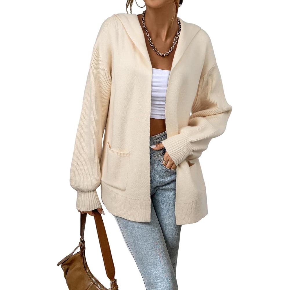 Astylish Women Hooded Cardigan Sweaters Chunky Open Front Pockets Oversized Solid Ribbed Outerwear Fall Outfits(Apricot)