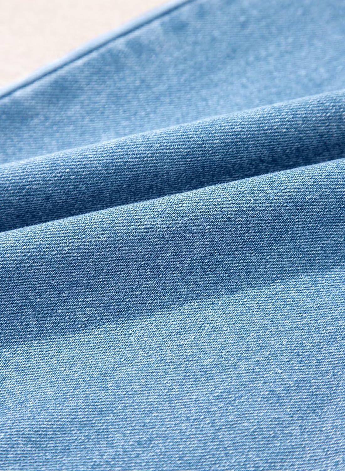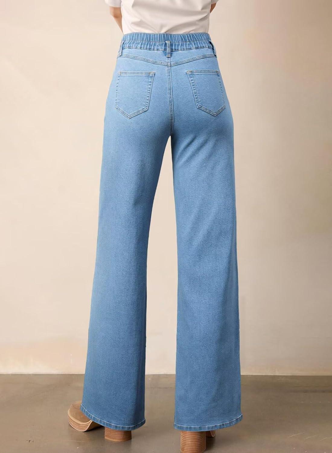 Astylish Women’s Stretch Elastic High Waisted Jeans Trendy Baggy Wide Leg Straight Denim Pants(Sky Blue)