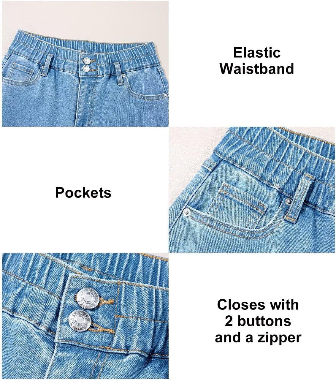 Astylish Women’s Stretch Elastic High Waisted Jeans Trendy Baggy Wide Leg Straight Denim Pants(White)