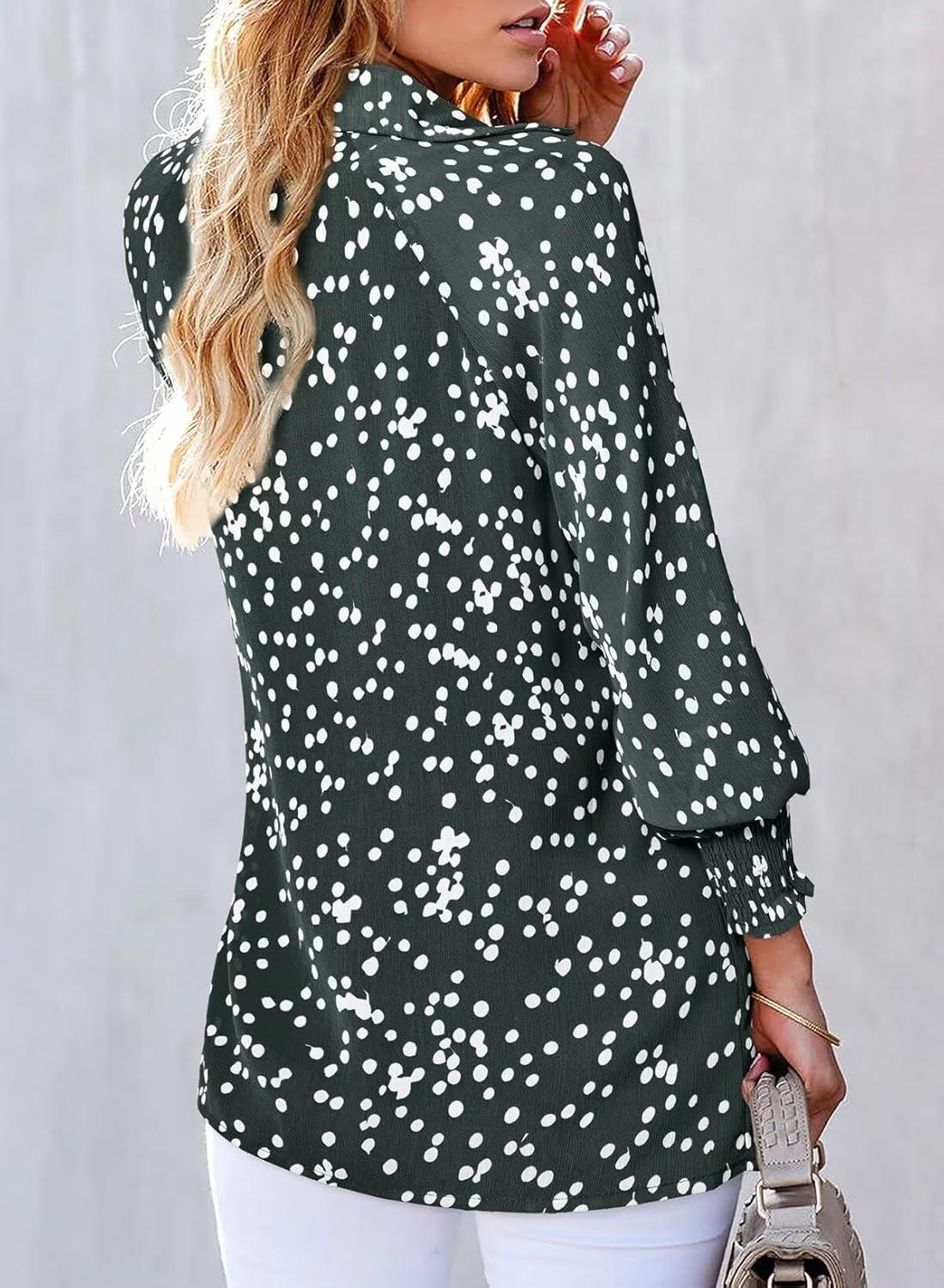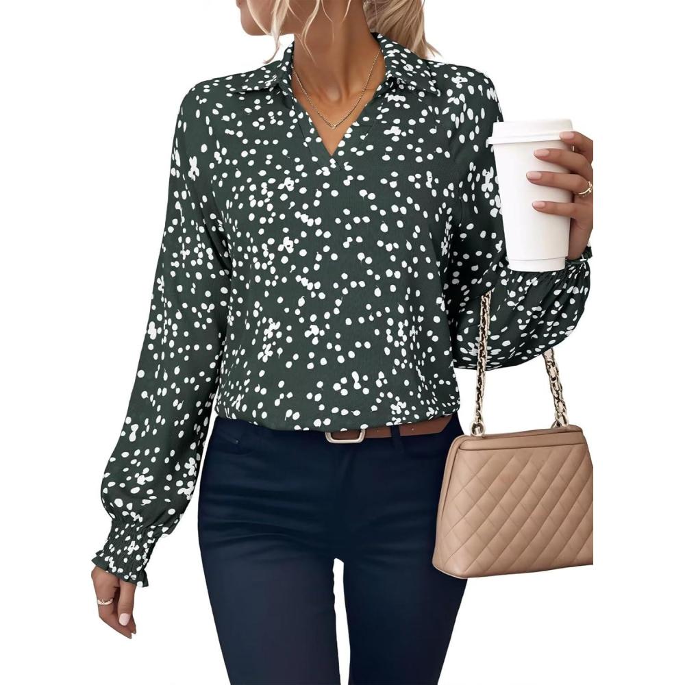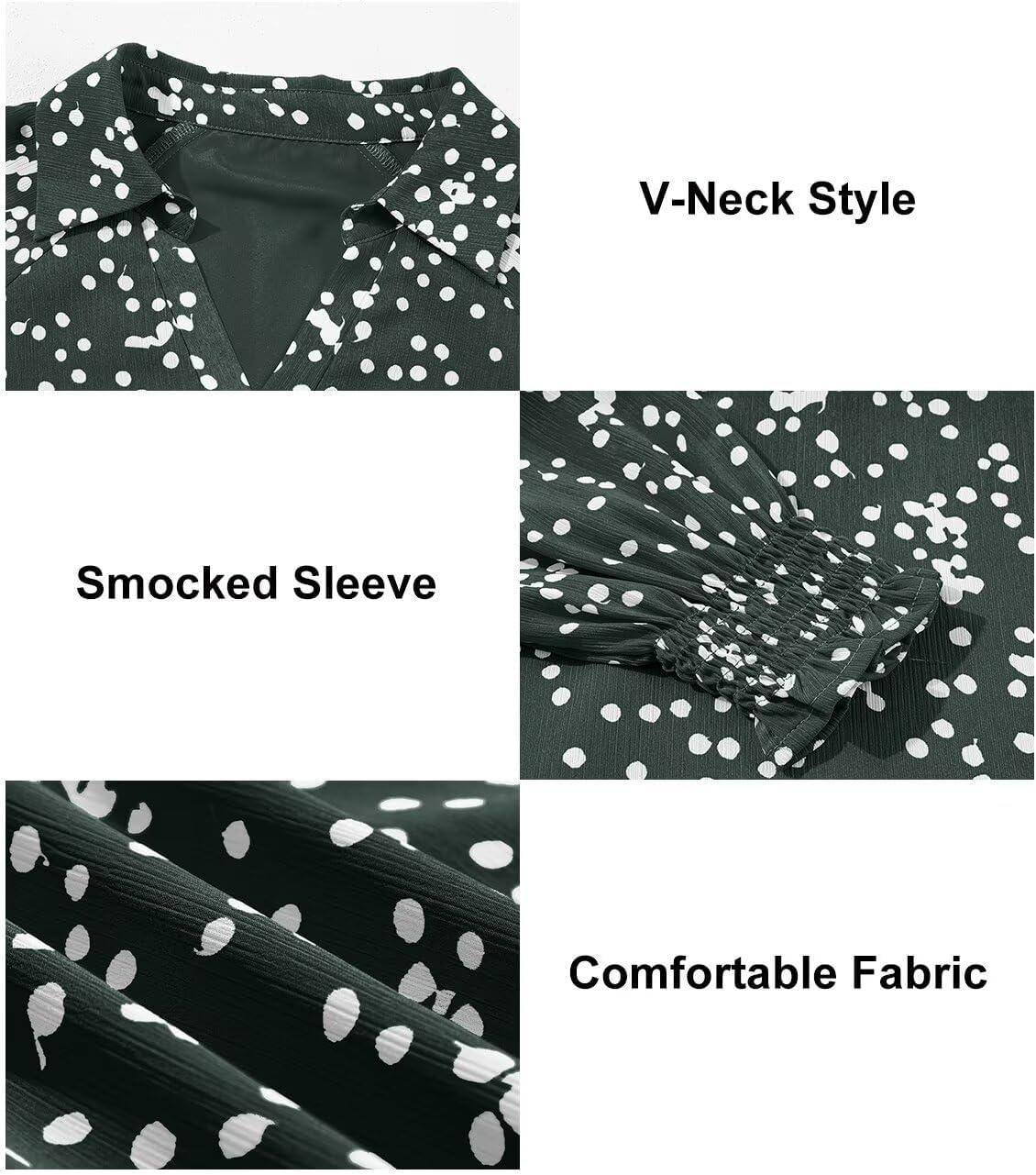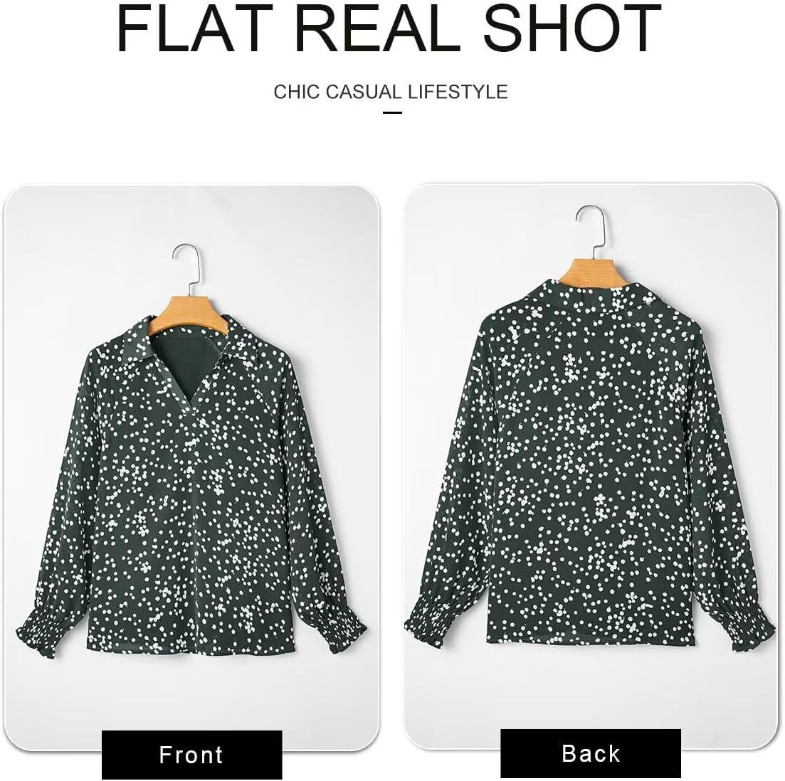 Astylish Women’s Trendy Polka Dot Alicia Floral Blouses Long Sleeve Shirts Chiffon V Neck Bohemian Collared Tops(Green)