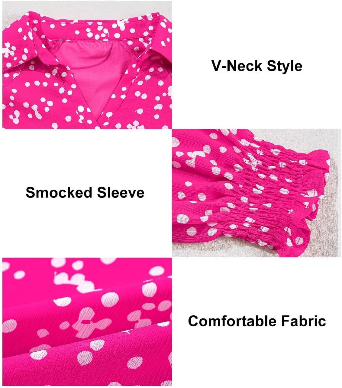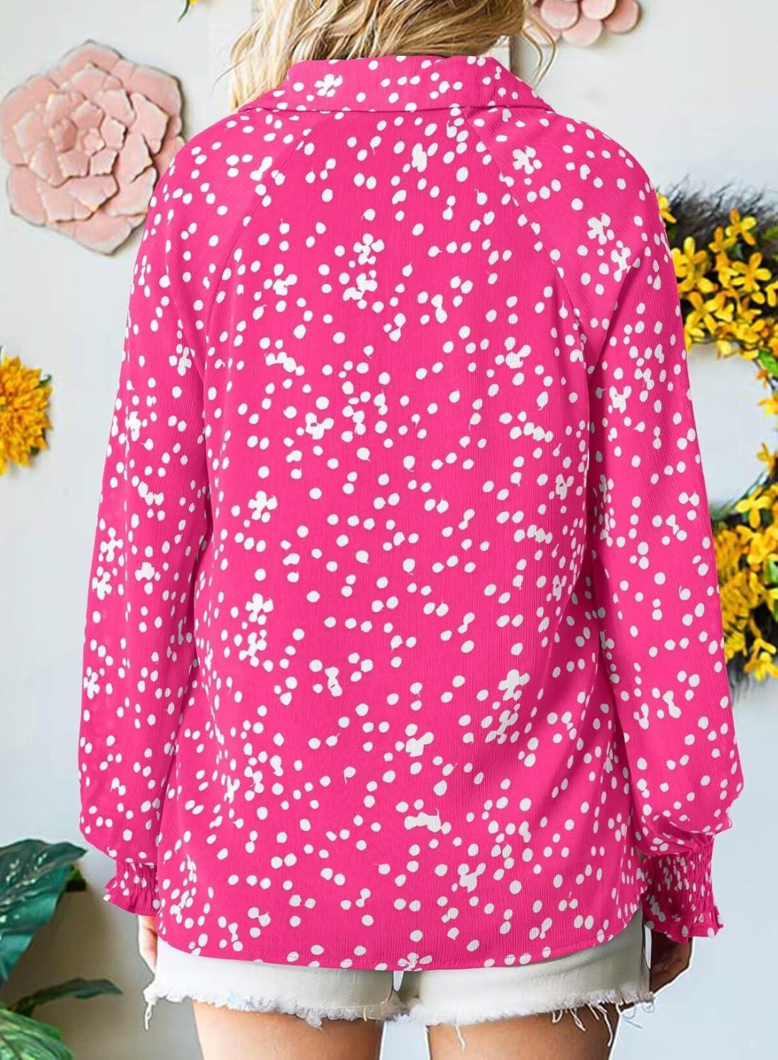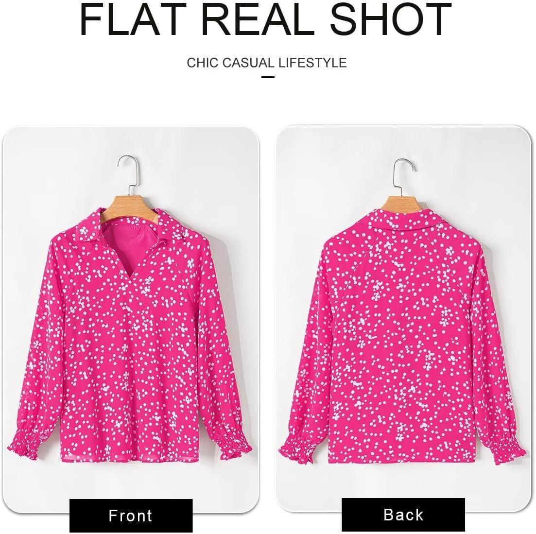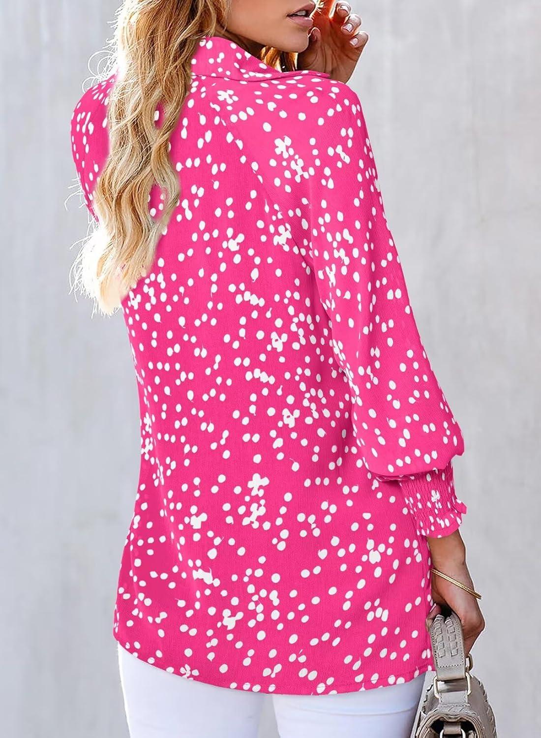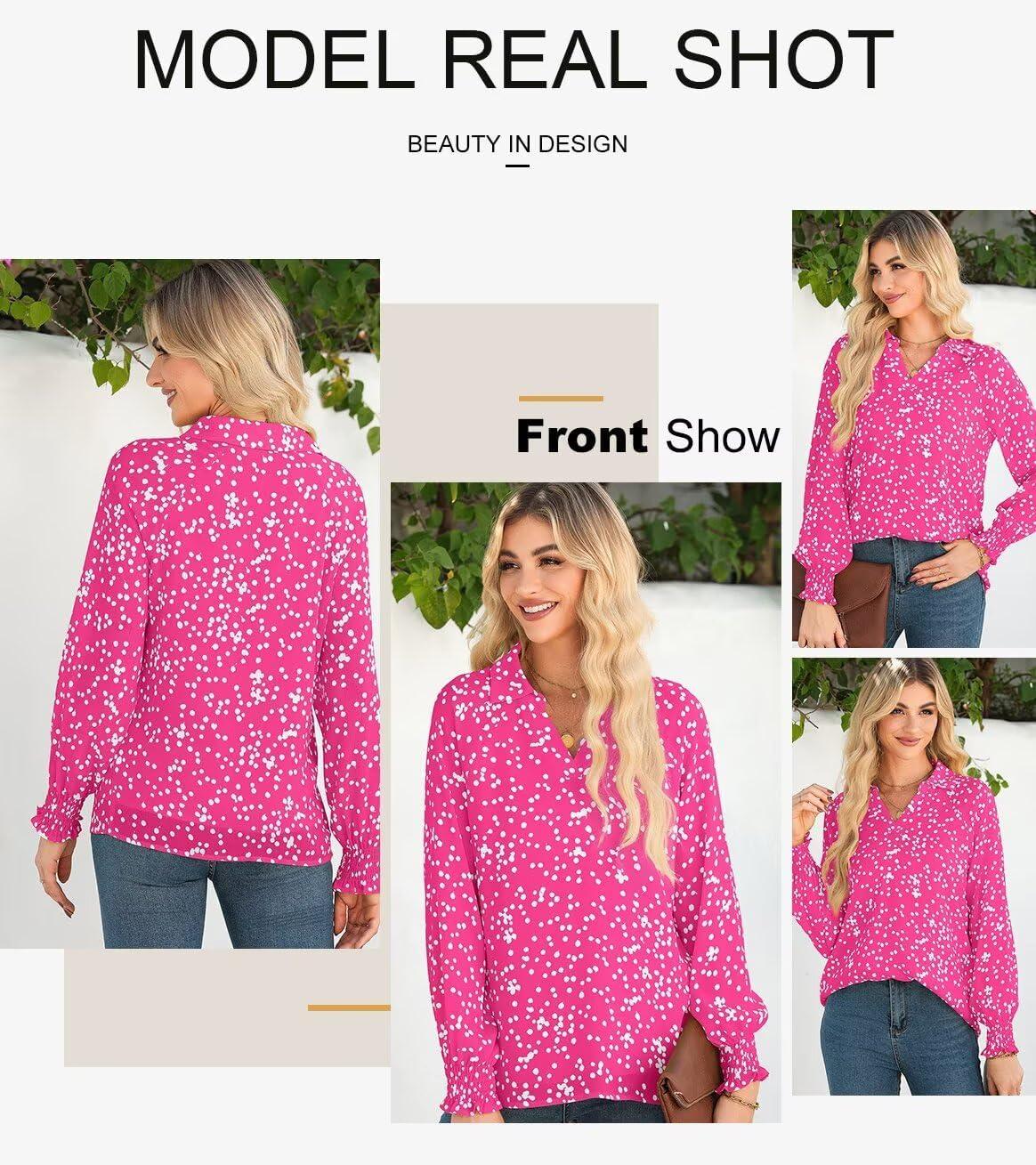 Astylish Women’s Trendy Polka Dot Alicia Floral Blouses Long Sleeve Shirts Chiffon V Neck Bohemian Collared Tops(Pink)