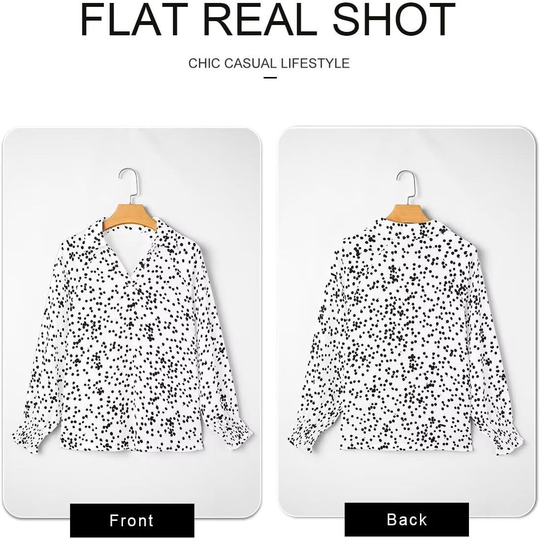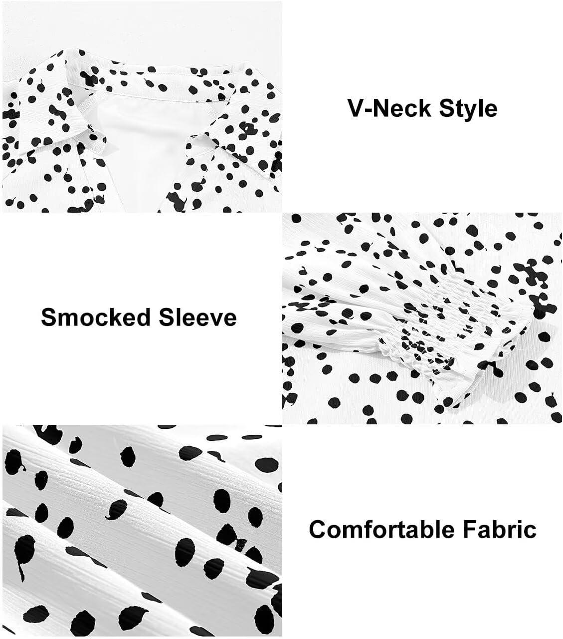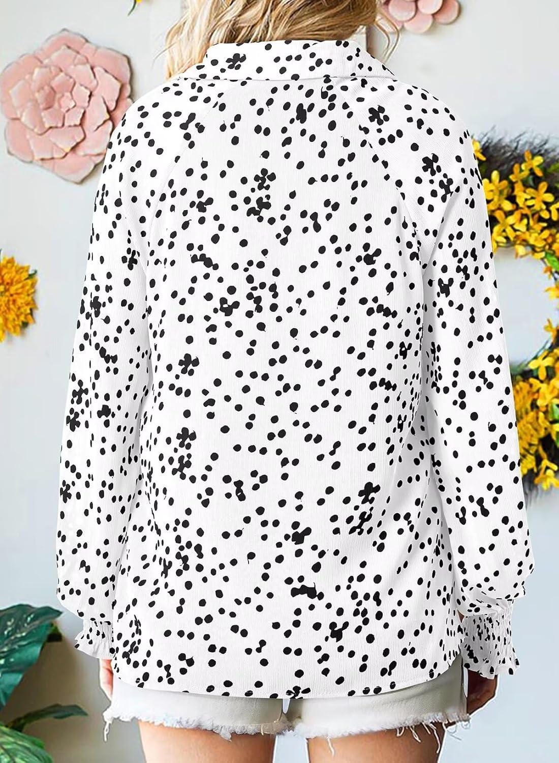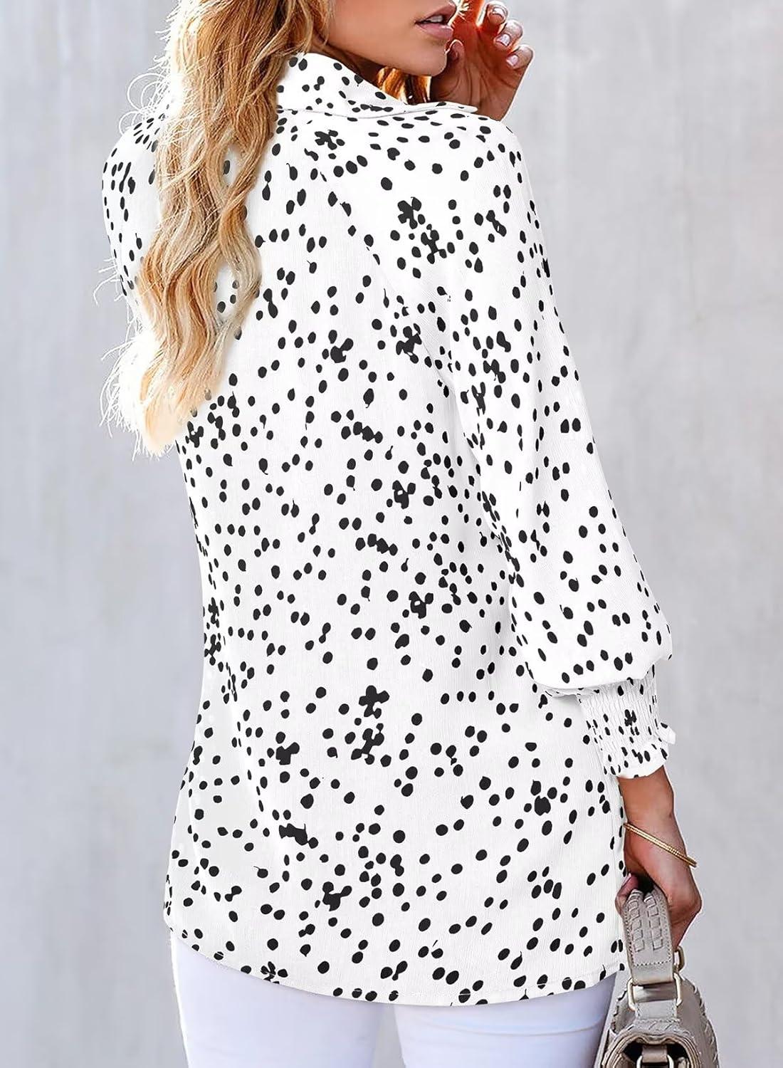 Astylish Women’s Trendy Polka Dot Alicia Floral Blouses Long Sleeve Shirts Chiffon V Neck Bohemian Collared Tops(White)
