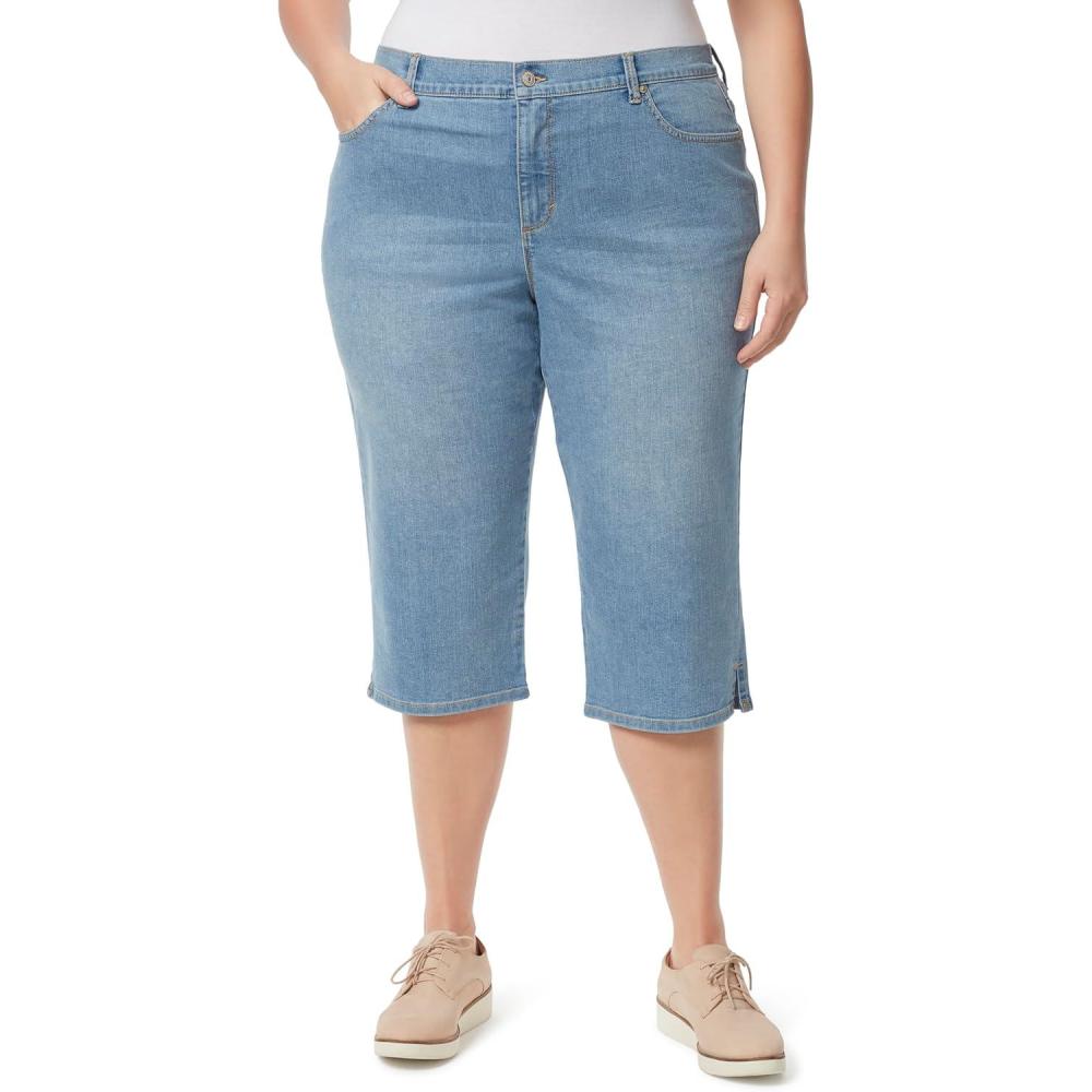 Gloria Vanderbilt's Amanda Classic capri sits at natural waist with functional pockets, zipper fly, belt loops and stretch for a perfect fit feeling Everytime. This high rise waist crop has a contour fit and stretch body with excellent recovery. Pairs perfectly with all tops from fashion forward to a basic tee shirt and all footwear from stylish heels to your favorit trendy flats. Available in assorted solid colors, see color name for specifics. Gloria Vanderbilt is a versatile yet classic look that attracts and connects with the modern sensibility of consumers of all ages.