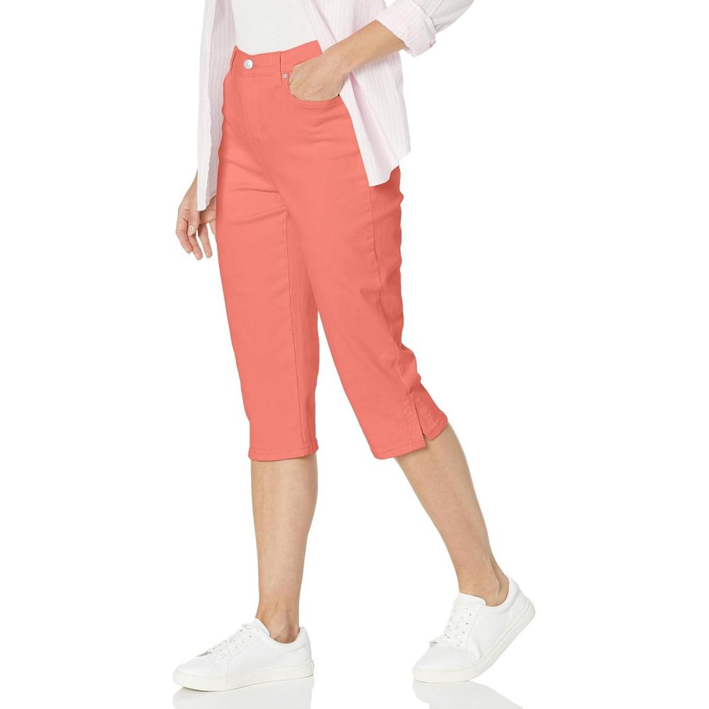 Gloria Vanderbilt's Amanda Classic capri sits at natural waist with functional pockets, zipper fly, belt loops and stretch for a perfect fit feeling Everytime. This high rise waist crop has a contour fit and stretch body with excellent recovery. Pairs perfectly with all tops from fashion forward to a basic tee shirt and all footwear from stylish heels to your favorit trendy flats. Available in assorted solid colors, see color name for specifics. Gloria Vanderbilt is a versatile yet classic look that attracts and connects with the modern sensibility of consumers of all ages.