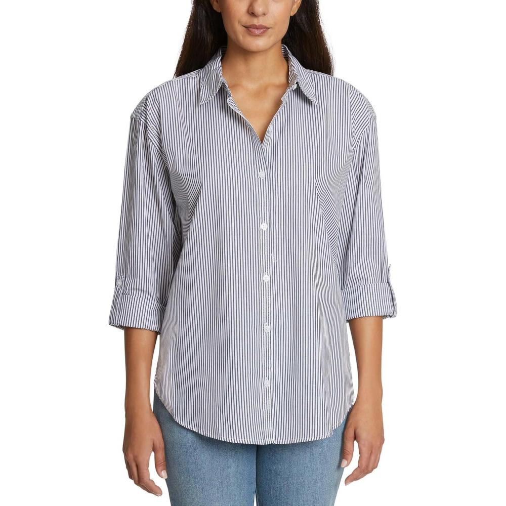 Gloria Vanderbilt Women’s Amanda Oversized Button Down Shirt with Roll-tab Sleeves(Navy Stripe)