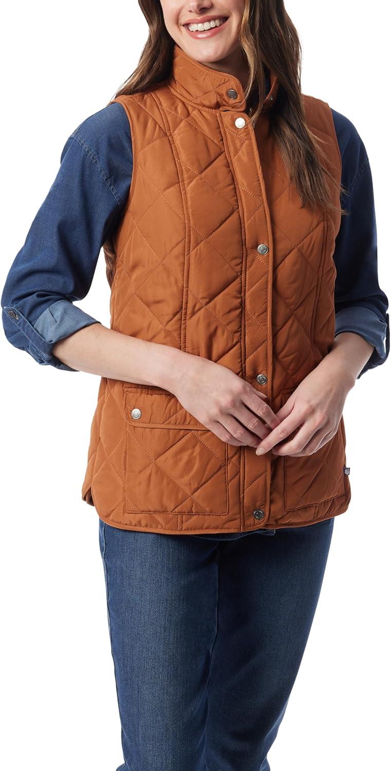 Gloria Vanderbilt Women’s Casual Quilted Vest with Front Zipper and Snaps Standard(Maple Syrup)